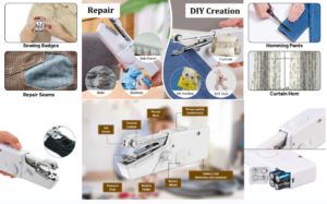 It’s compact and easy to operate, often with a “one-button” or “one-hand” style — no need for sewing-machine setup or prior sewing experience.